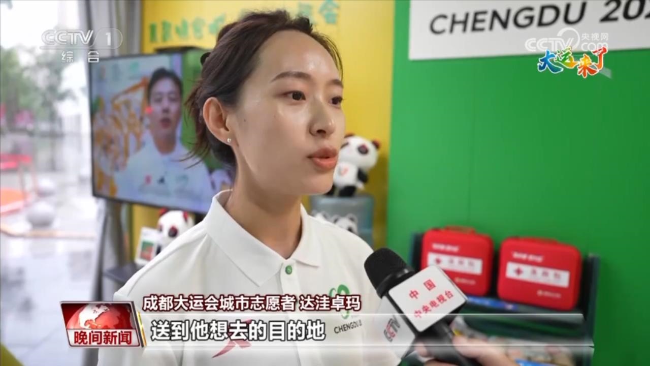 成都大運(yùn)會(huì)城市志愿者 達(dá)洼卓瑪:來(lái)的人大部分是有一些應(yīng)急的需求,躲雨或者借傘。像年齡大的人,我們可能還幫他去叫車,送到他想去的目的地。