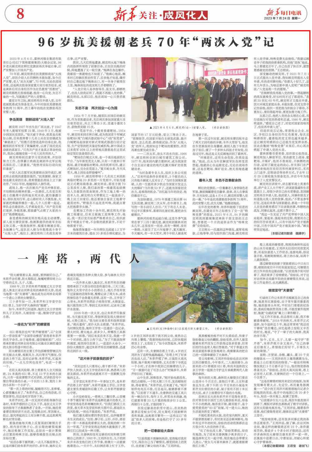 70年前,顧克明曾在抗美援朝戰(zhàn)場“火線入黨”,卻因介紹人壯烈犧牲未能如愿,如今莊嚴宣誓,老人“此生無憾”。70年間,無論在戰(zhàn)場殺敵,還是兩次投身國家重大項目艱苦創(chuàng)業(yè),或是離休后用自身經(jīng)歷作為紅色教育“活教材”,顧克明都絕無畏縮逃避,他用一心向黨、矢志不渝的一生,寫就最莊嚴的入黨誓詞。