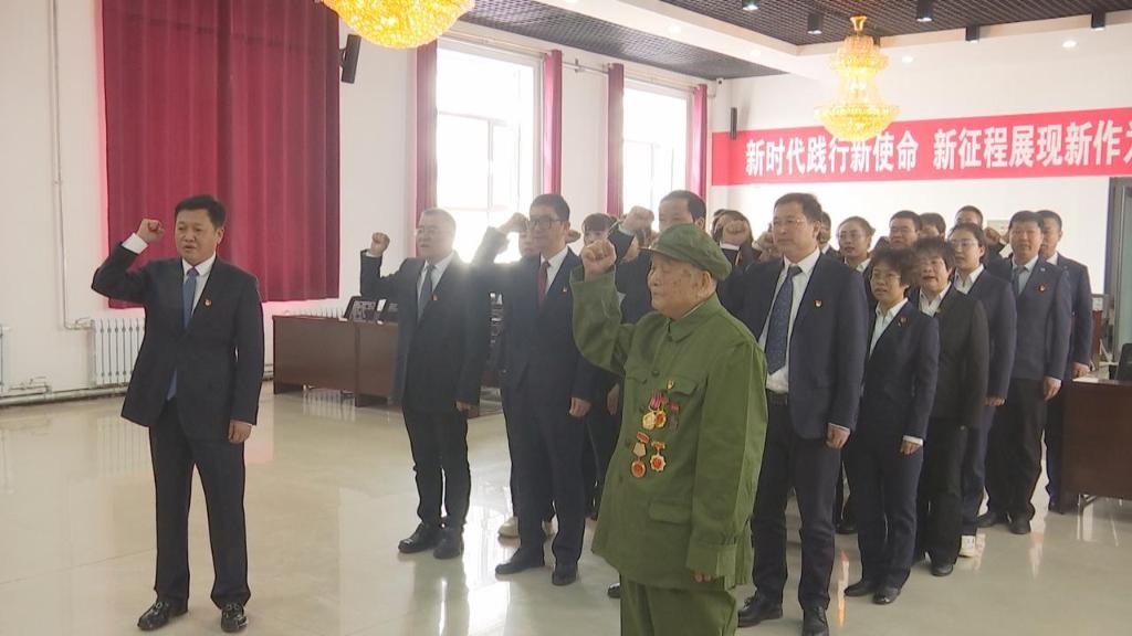 2023年4月6日,霍林河煤業(yè)集團有限責(zé)任公司(以下簡稱霍煤集團)大樓會議室,96歲老兵顧克明在鮮紅黨旗前再次舉起右拳,莊嚴宣誓加入中國共產(chǎn)黨。
