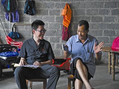 近日,廣西壯族自治區(qū)上林縣人民法院執(zhí)行局法官黃鑫和同事驅(qū)車來到渡口,再乘船到大龍洞村進(jìn)行走訪調(diào)查。