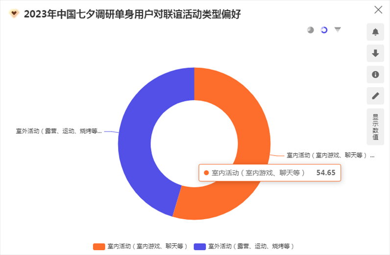 “單身經(jīng)濟與浪漫經(jīng)濟并不沖突。”張毅告訴記者,今年單身人士參加七夕節(jié)交友聯(lián)誼活動意愿強烈,“有53.77%的表示會參加。在聯(lián)誼活動的選擇上,54.65%的人會選擇劇本殺、密室逃脫、桌游等室內(nèi)活動?!?/p>