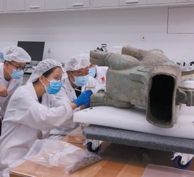 “三星堆的金器受損都很嚴(yán)重,剛出土?xí)r基本無法完全確定原有形狀?!濒敽W诱f,他還記得,5號坑黃金大面具剛發(fā)現(xiàn)時(shí),被泥土擠壓變形成不到兩厘米厚的一塊,靜靜地埋在坑中。在國家博物館的專家到來之前,他連續(xù)幾天進(jìn)行相關(guān)準(zhǔn)備工作,提取金面具的相關(guān)成分進(jìn)行檢測,判斷矯形的可行性,為后期工作提供基礎(chǔ)數(shù)據(jù)和技術(shù)保障。