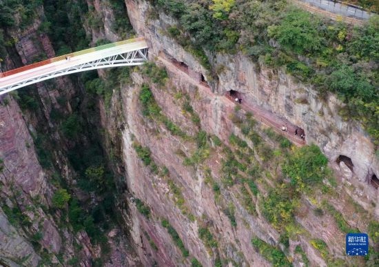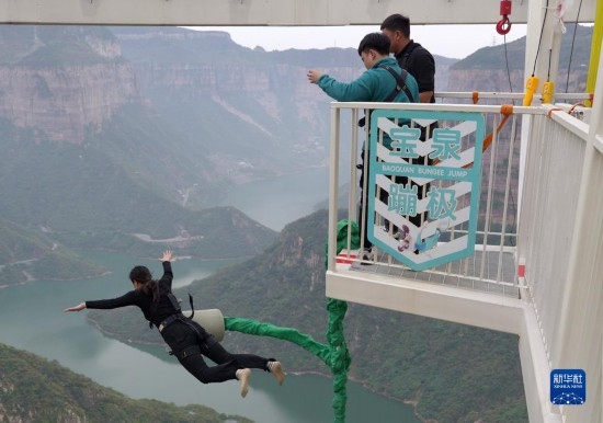 近年來,河南省輝縣市依托南太行山優(yōu)質(zhì)旅游資源,積極探索沉浸式文旅新模式,打造以“崖”為主題的景區(qū),建成投運了“空中巴士”、蹦極等懸崖文旅項目,讓廣大游客沉浸式游覽在懸崖峭壁之中。