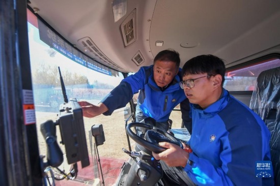 10月19日,在中國科學(xué)院“黑土糧倉”科技會戰(zhàn)長春示范區(qū)公主嶺示范基地,中國科學(xué)院東北地理與農(nóng)業(yè)生態(tài)研究所高級工程師陳國雙(左)與團(tuán)隊成員調(diào)試無人駕駛農(nóng)機。