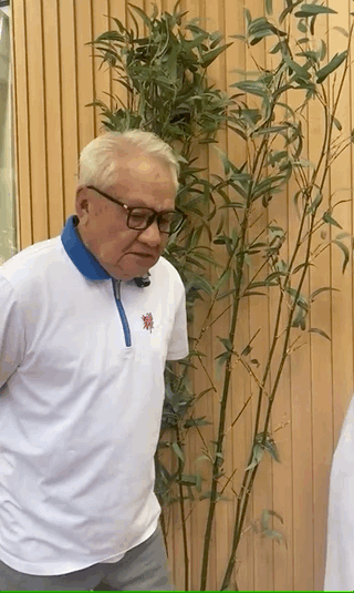 每天午餐后,他會(huì)在這里擺好桌子和道具,招呼爺爺奶奶們拍視頻。