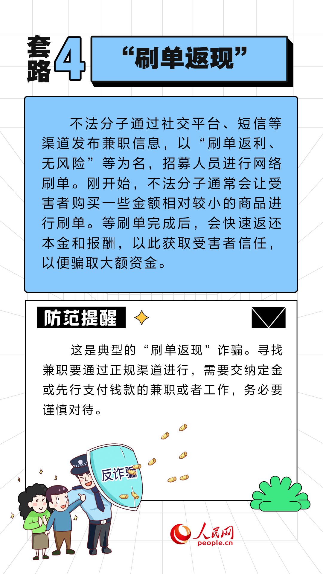 人民網(wǎng)北京11月10日電 (周靜圓)近期,“雙11”促銷活動(dòng)如火如荼地進(jìn)行中。不法分子也伺機(jī)而動(dòng),設(shè)置各式各樣陷阱。人民網(wǎng)“求真”欄目整理了六種常見的套路,提醒大家提高警惕,守好“錢袋子”。