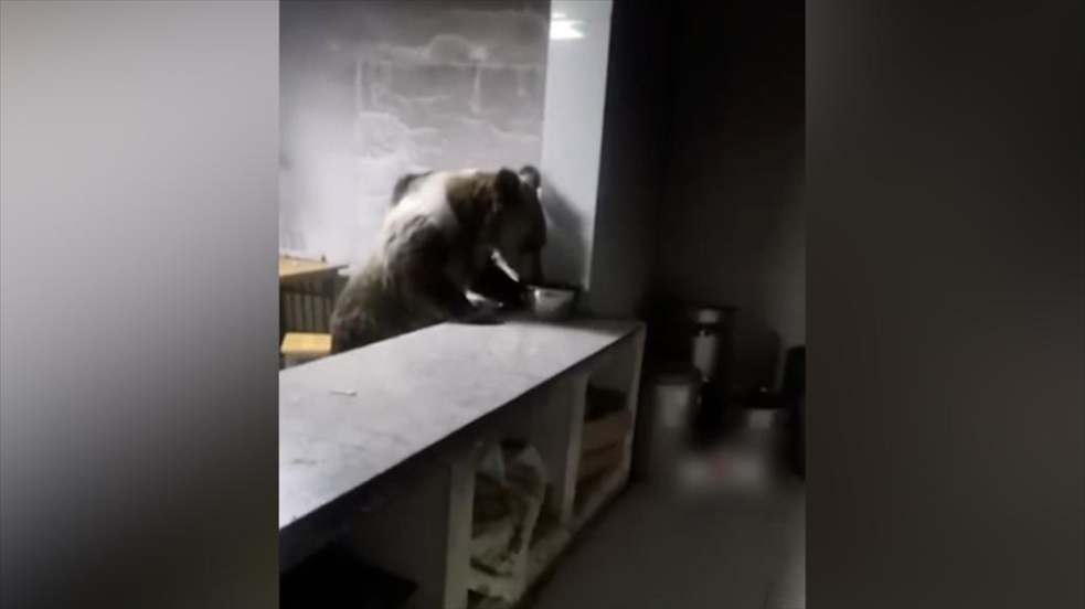 ·青海海西一只兩米高大棕熊到食堂悠然進(jìn)餐,礦區(qū)工友表示“老朋友,每天都見”。