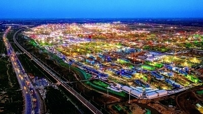 夜幕下,雄安新區(qū)建設現(xiàn)場的燈光照亮夜空,勾勒出一道道美麗的風景線。薛志勇攝