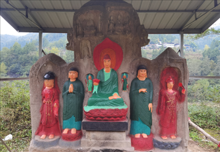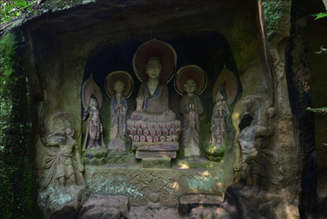 此外在四川廣安、資陽(yáng)、內(nèi)江等地也存在類似情況。位于廣安市經(jīng)開(kāi)區(qū)的金鳳山摩崖造像,開(kāi)鑿于宋代,1994年當(dāng)?shù)厝罕娮阅假Y金對(duì)造像的殘缺部位進(jìn)行了修補(bǔ),并涂上紅、藍(lán)、青三色油漆。位于內(nèi)江市資中縣的羅漢洞,建于宋代,1998年,當(dāng)?shù)厝罕娮曰I資金對(duì)羅漢洞內(nèi)“拈花微笑佛”進(jìn)行裝彩重繪,目前,其余造像無(wú)妝彩重塑現(xiàn)象。此外,核查中還發(fā)現(xiàn)四川資陽(yáng)市雁江區(qū)的半月山摩崖造像,佛足部分有人為刻畫(huà)痕跡。