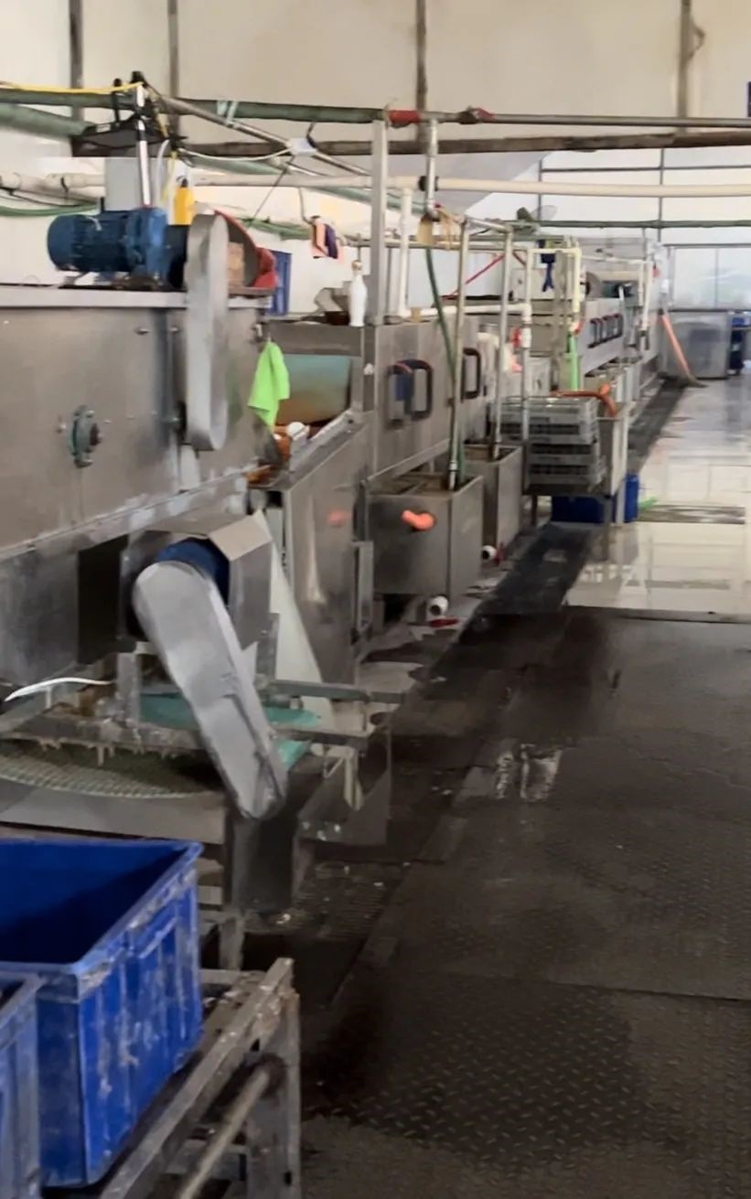 進入廠房首先看到的就是一整車餐余垃圾,靠墻放置著多箱已使用后的餐具,地面上存有積水,機器處于停止狀態(tài),工作臺上留有殘余垃圾,還有鞋墊在上面晾曬。在此期間有多輛小型貨車來裝卸餐具。