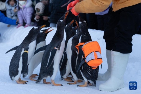 時(shí)值周末,哈爾濱極地公園的企鵝亮相戶外,上演冰雪巡游,吸引許多游客前來(lái)觀賞。目前正是黑龍江省哈爾濱市的冰雪旅游季。