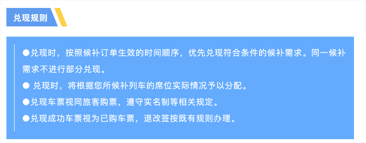 鐵路12306關于“候補購票訂單兌現(xiàn)”的提示