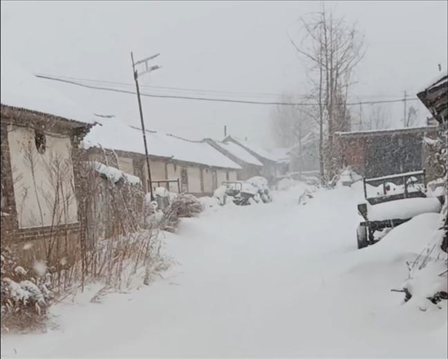 煙臺(tái)大學(xué)東門(mén)附近,冷流雪正在狂暴,宛如北極科考。微博網(wǎng)友觀云夢(mèng)雨 視頻截圖