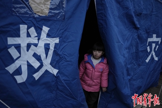 韓福成的兩個小女兒年紀(jì)小,對地震沒什么感覺,“還想著睡覺”;獨自在縣中寄宿的大女兒和老師在一起,“不冷,也不會很害怕”。