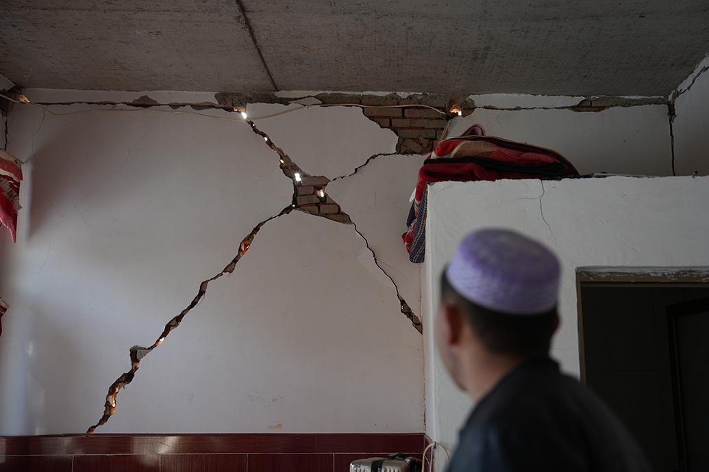 馬國(guó)忠的叔叔看著家里開裂的墻。