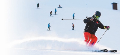 內(nèi)蒙古自治區(qū)扎蘭屯市金龍山滑雪場(chǎng)的滑雪愛好者。王曉博攝(人民圖片)