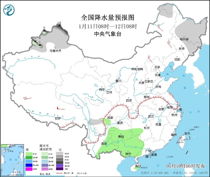 預計10-12日,新疆北部多降雪,降雪量以小到中雪為主,阿勒泰、塔城、伊犁河谷等地部分地區(qū)有大到暴雪,局地大暴雪。此外,10日夜間到11日,內蒙古東北部、黑龍江、吉林等地的部分地區(qū)有小雪。