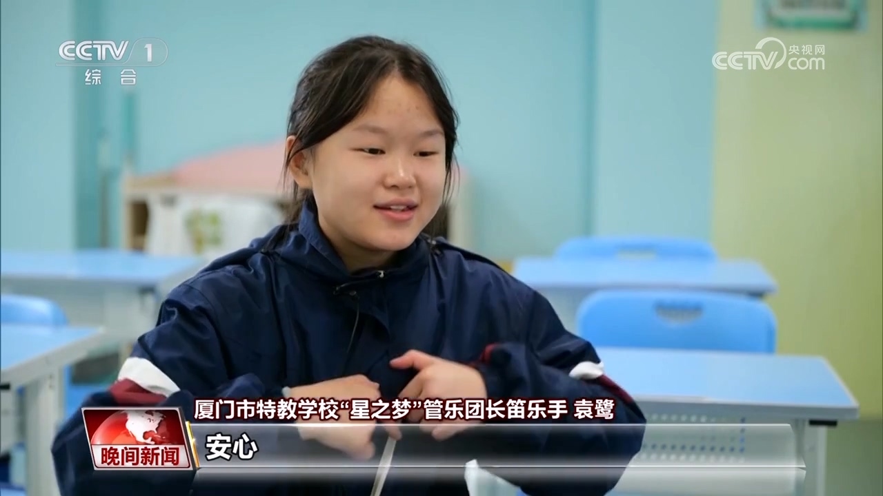 廈門市特教學(xué)?!靶侵畨簟惫軜穲F(tuán)長笛老師 杜佳鈺:因?yàn)檎f音樂是全人類共通的語言,我希望這件事情的意義也是能不要把這些孩子排除在全人類的音樂的共同事業(yè)的范圍之外。