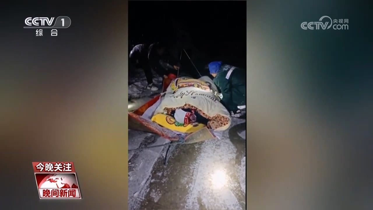 大家找來地毯和棉絮,做了一張雪地臨時急救床,再鋪上厚被子為孕婦做好保暖,盡管一步一滑、頻頻摔倒,但大家齊心協(xié)力,在雪地里拖行400米,終于將產婦安全送上救護車。