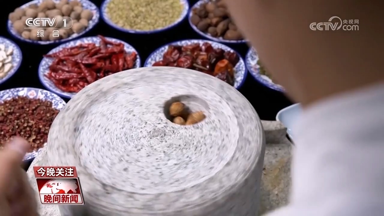 經(jīng)過傳統(tǒng)石磨碾制的料包,散發(fā)出獨(dú)特的香味。劉超群發(fā)現(xiàn),隨著生活水平越來越好,人們對口味的要求也越來越高,因此他更要嚴(yán)選食材。比如,雞肉必須得是散養(yǎng)的溜達(dá)雞,吃起來肉質(zhì)更緊致、鮮嫩。此外,劉超群還不斷嘗試,在湯底中加入中藥材,形成獨(dú)家的口味和配方。