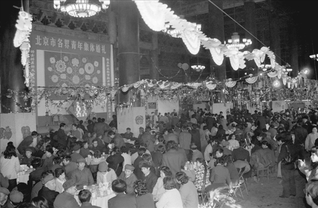 1983年春節(jié)前夕,首都150對青年破舊俗、立新風(fēng)、文明節(jié)儉辦婚事,參加了由北京市工、青、婦等九單位舉辦的集體婚禮。
