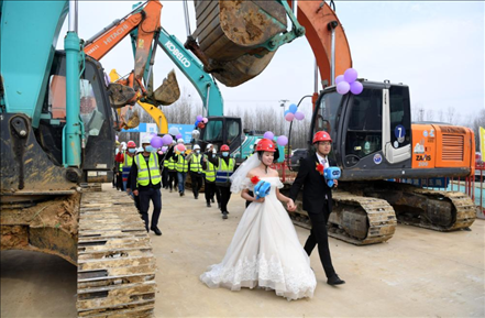 2021年2月8日,中建五局安徽公司合肥聚變堆項(xiàng)目技術(shù)人員蔣吉豐和愛人張小菊在項(xiàng)目工地舉辦了一場簡樸、溫馨的婚禮。