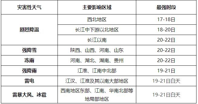 央視網(wǎng)消息:中央氣象臺預(yù)計(jì),2月17日至22日寒潮天氣將影響我國,中東部地區(qū)氣溫起伏劇烈,大部地區(qū)降溫10~18℃,局地氣溫降幅可達(dá)20℃以上;全國大部有明顯雨雪天氣,其中陜西、山西、河南、山東等地有暴雪,局地大暴雪;河南、湖北、湖南、貴州將先后出現(xiàn)凍雨;江淮、江南中北部局地有暴雨,南方地區(qū)有大范圍雷電和局地強(qiáng)對流天氣。