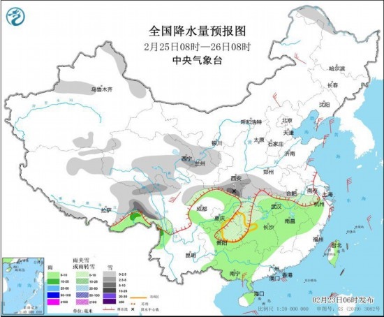 全國降水量預(yù)報圖(2月23日8時-24日8時)