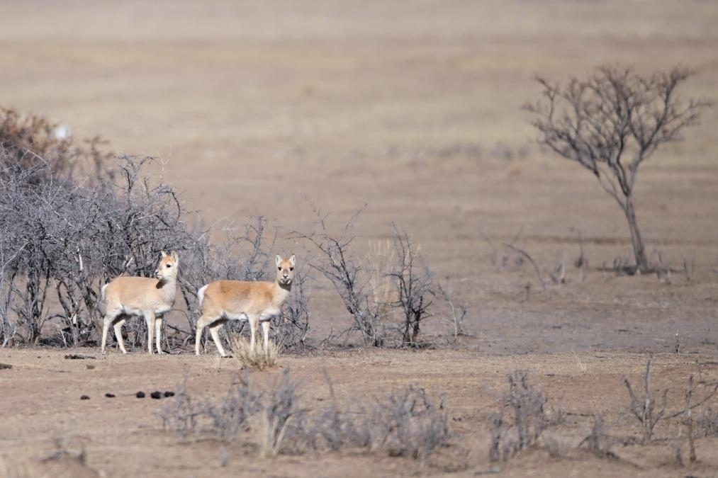 1月24日,青海省海北藏族自治州剛察縣哈爾蓋鎮(zhèn)境內的草原上的普氏原羚。新華社記者 張龍 攝