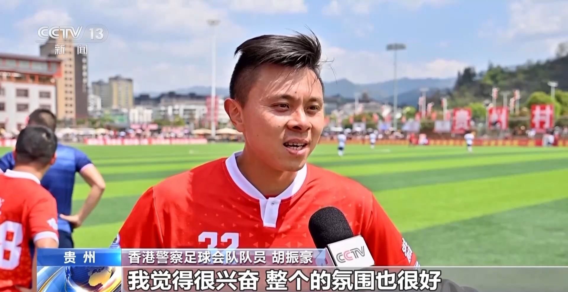 香港警察足球會(huì)隊(duì)隊(duì)長(zhǎng) 陳憲鈞:這是我們第一次來(lái)貴州,給我們的印象很深,人們都很熱情,我們很開心來(lái)到這里,因?yàn)樵谙愀畚覀円部催^“村超”的現(xiàn)場(chǎng),所以我們有機(jī)會(huì)來(lái)到這里,跟大家一起踢(足球),我覺得非常開心。我們希望可以跟尤其是年輕人多交流,讓他們認(rèn)識(shí)我們香港警隊(duì)。