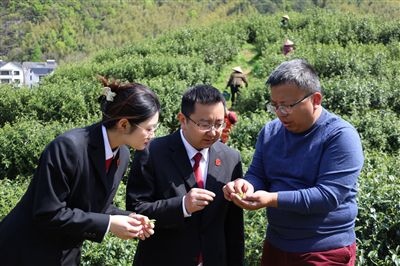 草木蔓發(fā),春山可望。浙江省金華市婺州舉巖茶基地迎來(lái)了春茶采摘季。近日,金華市婺城區(qū)人民法院干警來(lái)到基地,回訪采云間公司,了解該公司重整成功后的春茶開采工作。
