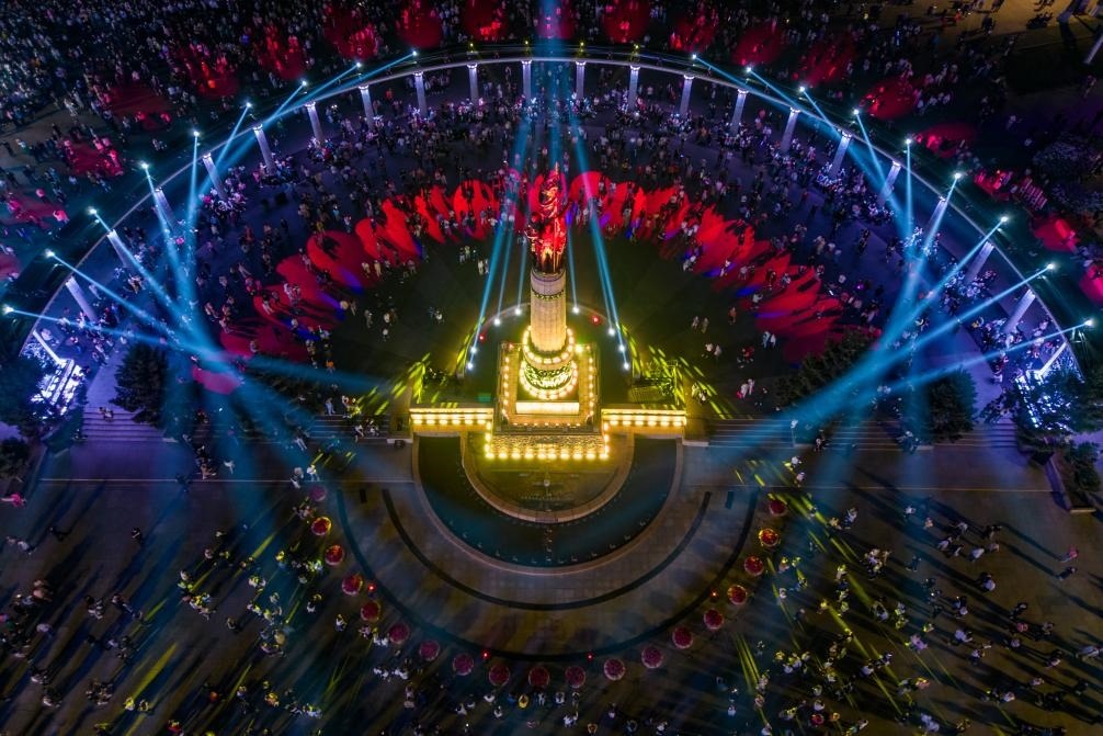 夜幕降臨,哈爾濱防洪勝利紀(jì)念塔廣場(chǎng)格外絢麗,萬眾期待的松花江光影秀準(zhǔn)時(shí)上演。聲、光、電交織舞動(dòng),以防洪紀(jì)念塔為中心,隔江呼應(yīng)著太陽島,每一次光影的變化都映射出這座城市獨(dú)特的文化意象。