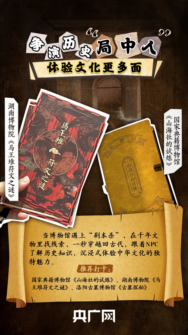 在國(guó)家典籍博物館的甲骨文展覽中尋找線索、到湖南省博物館破解“馬王堆符文之謎”……“五一”假期,不少人在博物館進(jìn)入“劇本殺”的世界,跟著NPC了解歷史知識(shí),沉浸式體驗(yàn)中華文化的魅力。