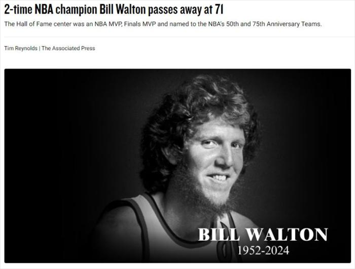 ·籃壇傳奇比爾·沃頓離世,他是姚明名人堂引薦人。