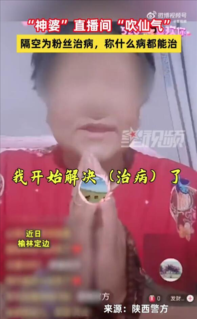 ·直播中吹“仙氣”為粉絲治病,“神婆”主播被陜西警方行政處罰。