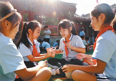 北京市東城區(qū)黑芝麻胡同小學(xué)“課間一刻鐘”,學(xué)生們?cè)谧鲇螒颉|S 超 郭 謙攝影報(bào)道