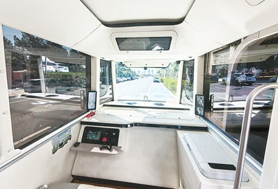 鄂爾多斯市康巴什區(qū)的智能網(wǎng)聯(lián)觀光巴士內(nèi)部。