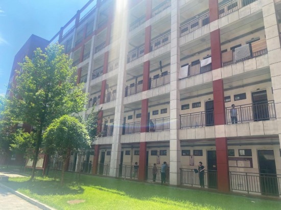 6日凌晨,垸內(nèi)居民被陸續(xù)轉(zhuǎn)移至各安置點(diǎn)。肖菊香和丈夫被安排在華容縣職業(yè)中專的宿舍一樓居住,房間里有涼爽的空調(diào)和獨(dú)立衛(wèi)浴。臨近中午,他們的兒女從遠(yuǎn)方趕來探望。記者看到,宿舍樓里還有一群學(xué)生志愿者,他們給轉(zhuǎn)移群眾送來了盆子、桶子等生活用品,不一會(huì),又給大家搬來小桌椅和公用插排,方便手機(jī)充電。