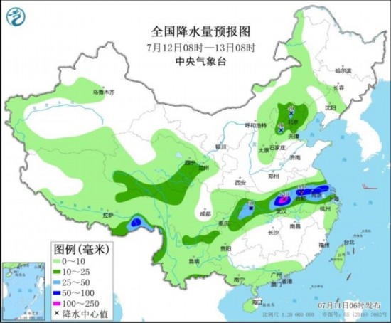 全國降水量預報圖(7月12日08時-13日08時)