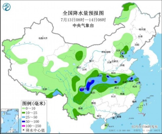 全國降水量預報圖(7月13日08時-14日08時)