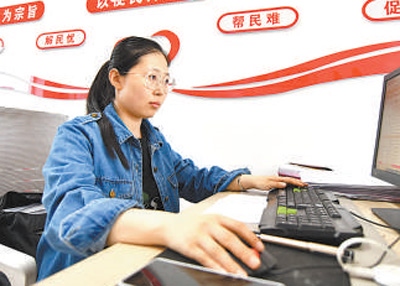 陳果在登記錄入外出務(wù)工人員信息。本報記者 趙帥杰攝