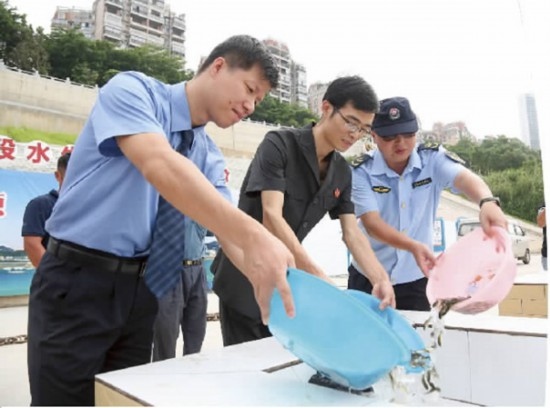 近日,梧州市龍圩區(qū)人民法院聯(lián)合區(qū)人民檢察院、梧州市農(nóng)業(yè)綜合行政執(zhí)法支隊(duì)漁政大隊(duì),在西江梧州段水生生物放流平臺增殖放流魚苗。