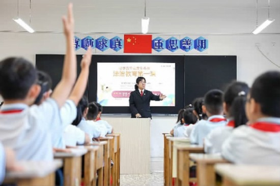 近日,吉林省四平市鐵西區(qū)人民法院依托法治副校長工作機制,攜手四平市陽光實驗小學(xué)舉辦了一場生動的“開學(xué)第一課”,通過與同學(xué)們互動問答、角色扮演等形式,為青少年健康成長營造良好法治環(huán)境,不斷提升青少年群體的法治素養(yǎng)。圖為法官與同學(xué)們在課堂上進(jìn)行互動交流。(記者 孫兵 通訊員 任青陽)