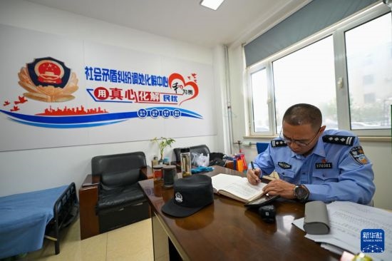 每周三上午,社區(qū)民警、社區(qū)書記、社區(qū)網(wǎng)格員、律師、人民調(diào)解員準(zhǔn)時來到位于天津市東麗區(qū)萬新街道萬隆花園社區(qū)警務(wù)室的“亞楠調(diào)解室”,集中為社區(qū)群眾提供免費法律咨詢、矛盾調(diào)解、群眾救助等服務(wù),不少群眾反映的問題在社區(qū)民警平亞楠的記錄本上逐一登記,也成為他掛在心頭的一件件大事。