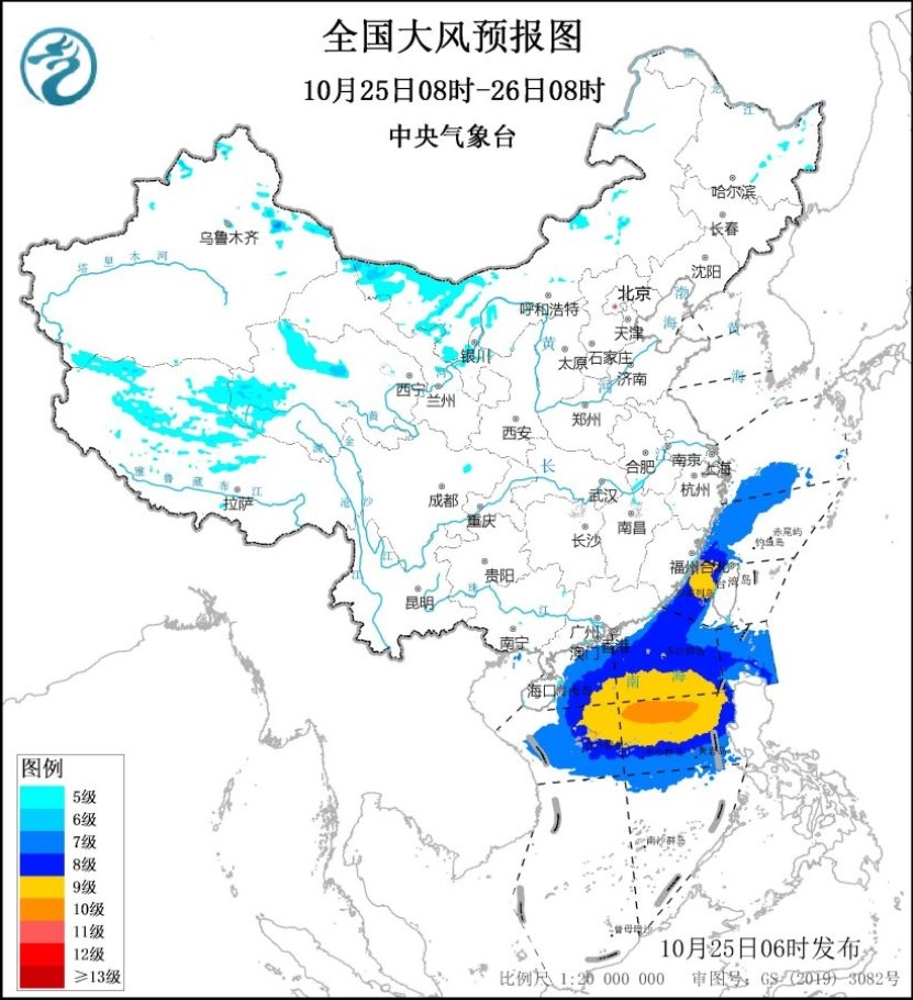 未來24小時,東海西部海域、臺灣海峽、南海北部和中部海域、巴士海峽、東沙群島、中沙群島、西沙群島將有7~9級、陣風(fēng)10~11級的大風(fēng),其中南海中東部的部分海域風(fēng)力可達(dá)10級、陣風(fēng)11~12級。