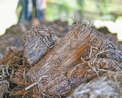 在稻草上種完稻草菇留下來的菇筒廢渣,可以用來制作有機肥。以上圖片均為戴慶福攝(人民視覺)