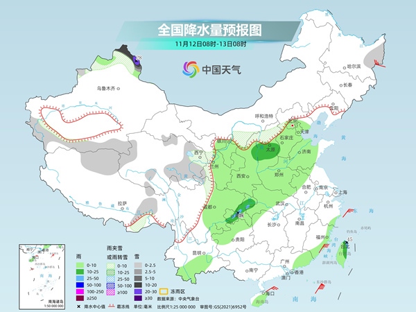 具體來看,中央氣象臺預(yù)計(jì),今天,內(nèi)蒙古河套地區(qū)、黑龍江東北部、新疆北疆北部和南疆盆地、西藏東部、青海東部和南部、甘肅南部、寧夏北部、陜西北部、山西北部、川西高原北部等地部分地區(qū)有小到中雪或雨夾雪,其中,新疆北疆北部和北疆東部等地部分地區(qū)有大到暴雪,局地大暴雪(20~28毫米)。西北地區(qū)東部、華北大部、黃淮、江淮西部、江漢大部、西南地區(qū)東部、云南西南部、廣東東南部、海南島、臺灣島等地部分地區(qū)有小到中雨,其中,湖北南部、重慶中西部和東北部、臺灣島北部和東部等地部分地區(qū)有大雨(25~45毫米)。