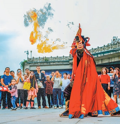 豐富文旅業(yè)態(tài)演員在進行非遺表演。磁器口古鎮(zhèn)管委會供圖