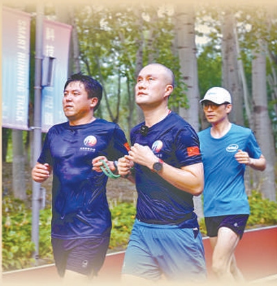 “助盲團(tuán)像我的第二個(gè)家,6年了,每次來之前都按捺不住激動?!苯衲?4歲的盲人宋新然,2018年加入“何亞君助盲團(tuán)”,無論嚴(yán)寒還是酷暑,他都堅(jiān)持每周三、周六來奧森跑步?!芭芷饋恚页3涀约菏且幻と?,只會感到身上充滿青春能量和朝氣。”宋新然說。