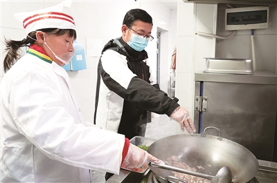 10點30分,記者來到福壽苑養(yǎng)老服務驛站,剛出鍋的咖喱雞塊、熘肉段、海帶冬瓜、裙帶菜豆腐等菜品香氣撲鼻,老年食堂已經(jīng)熱鬧了起來,老人陸續(xù)開始排隊打菜。記者與馬志鵬領到2個配送任務,一位是家住西壩河南里社區(qū)7號樓的趙老先生,另一位是家住柳芳北里社區(qū)3號樓的蔣老先生。